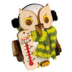 Drechslerei Kuhnert Holzfigur Mini Eule Schnee Eule mit Thermometer Rarität