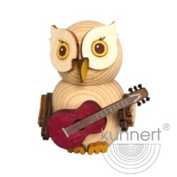 Drechslerei Kuhnert Holzfigur Mini Eule mit Gitarre Rarität