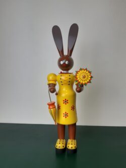 Hodrewa Legler Osterhasenfrau mit Blume und Schirm gelb