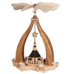 Zeidler Teelichtpyramide natur mit Seiffener Kirche und Kurrende